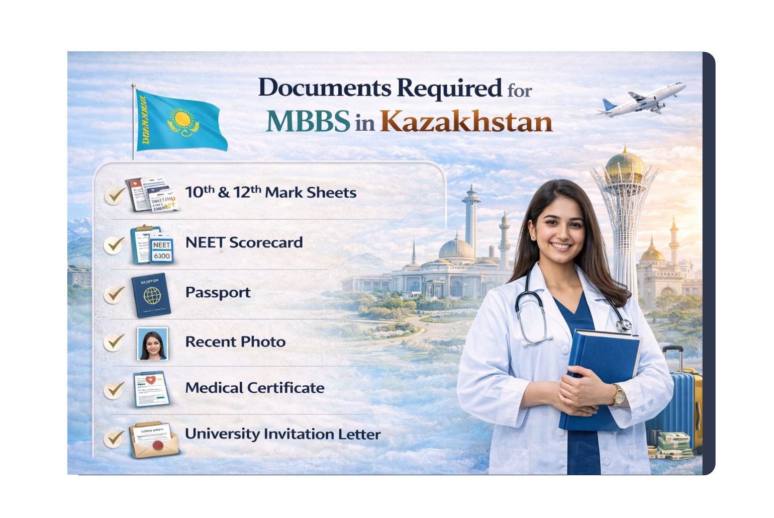 get into an MBBS programme in Kazakhstan, you need to have the right paperwork.
