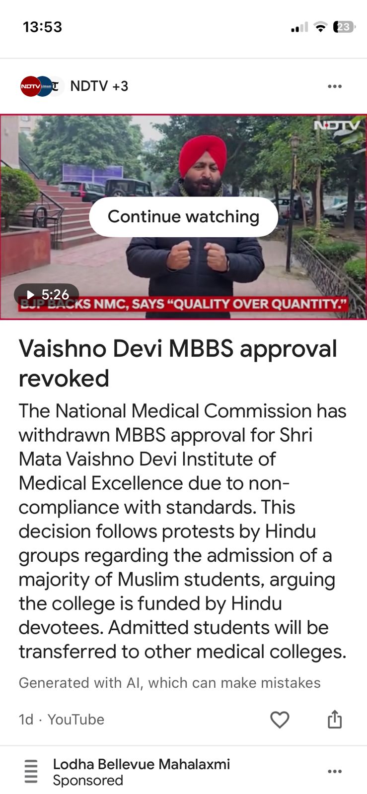 Read MoreThe National Medical Commission (NMC) has withdrawn the MBBS course approval for Shri Mata Vaishno Devi Institute of Medical Excellence due to non-compliance with prescribed academic and infrastructure standards. The decision was taken after an official review and inspection process conducted by the regulatory authority.